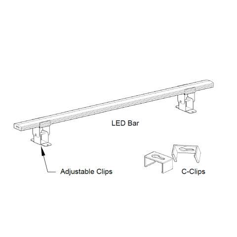 Includes LED Bar light, 8' barrel extension, mounting clips, and #4 flat head 5/8" screws.